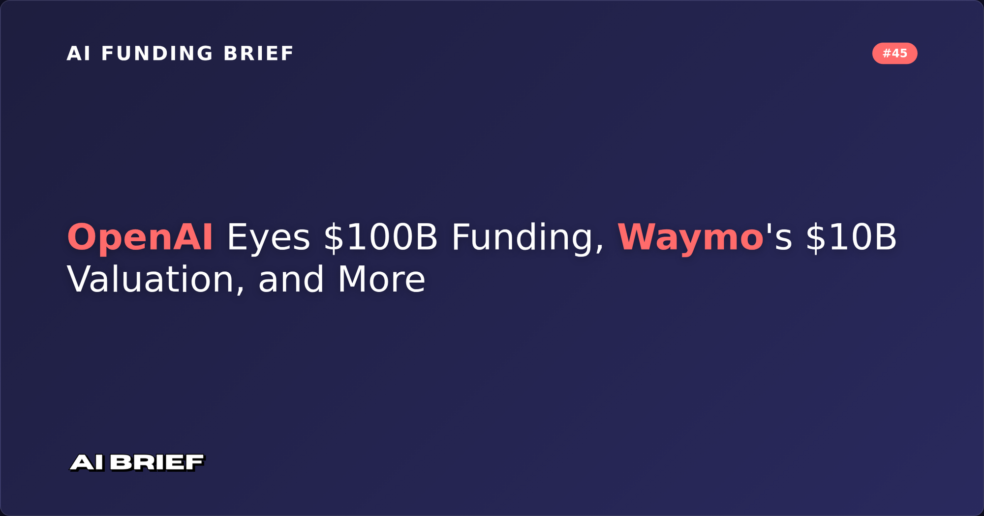 OpenAI Eyes $100B Funding, Waymo's $10B Valuation, and More - AI Funding Brief #45
