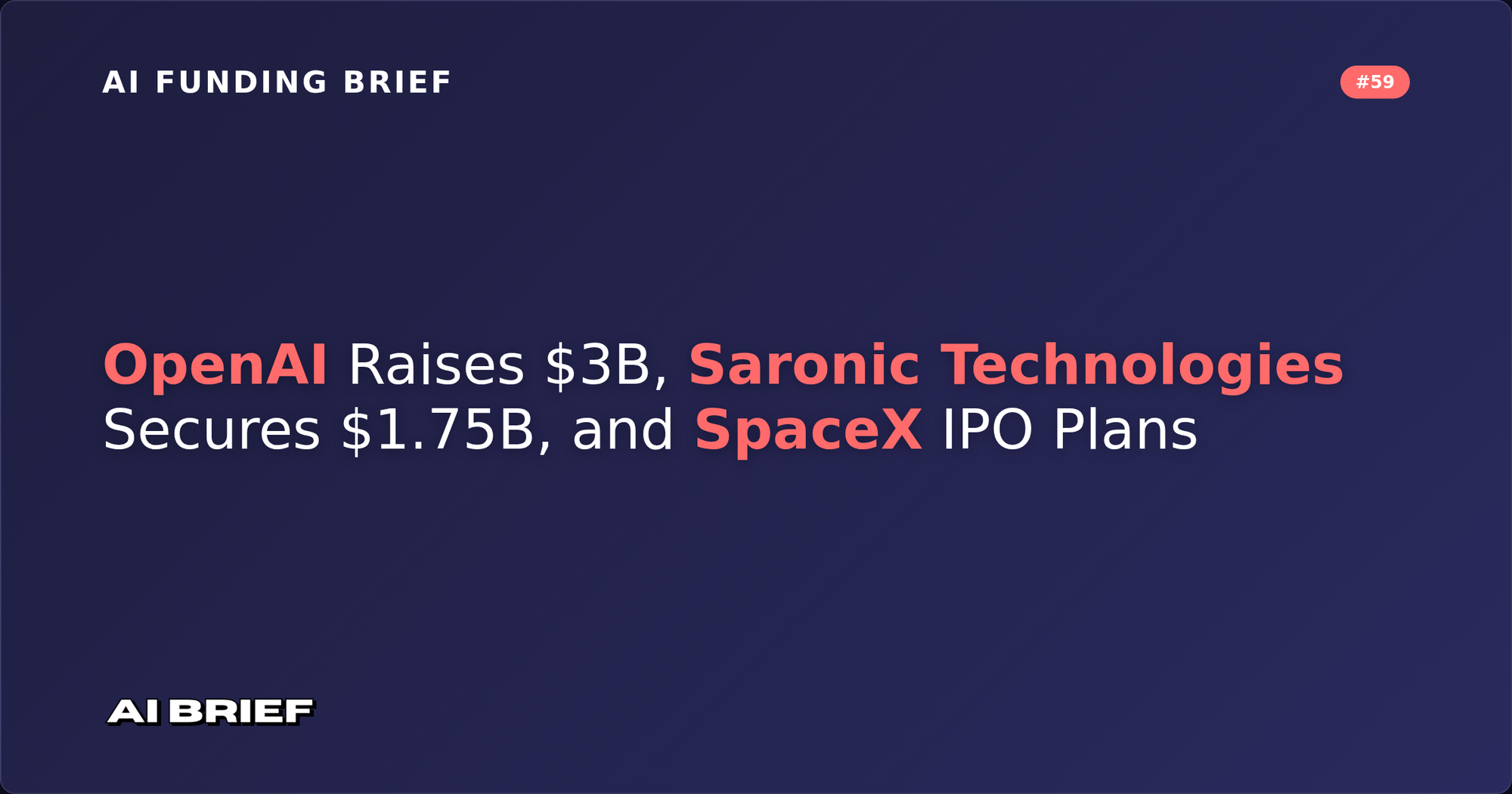 OpenAI Raises $3B, Saronic Technologies Secures $1.75B, and SpaceX IPO Plans - AI Funding Brief #59