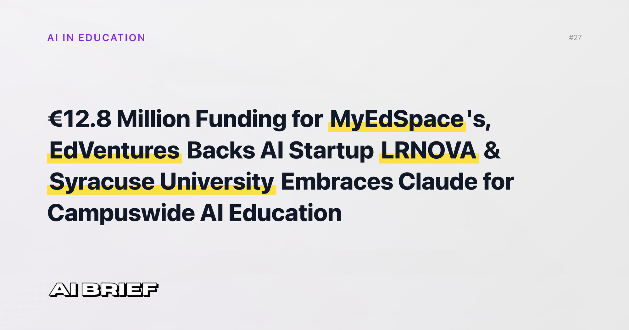 €12.8 Million Funding for MyEdSpace's, EdVentures Backs AI Startup LRNOVA & Syracuse University Embraces Claude for Campuswide AI Education - AI in Education #27