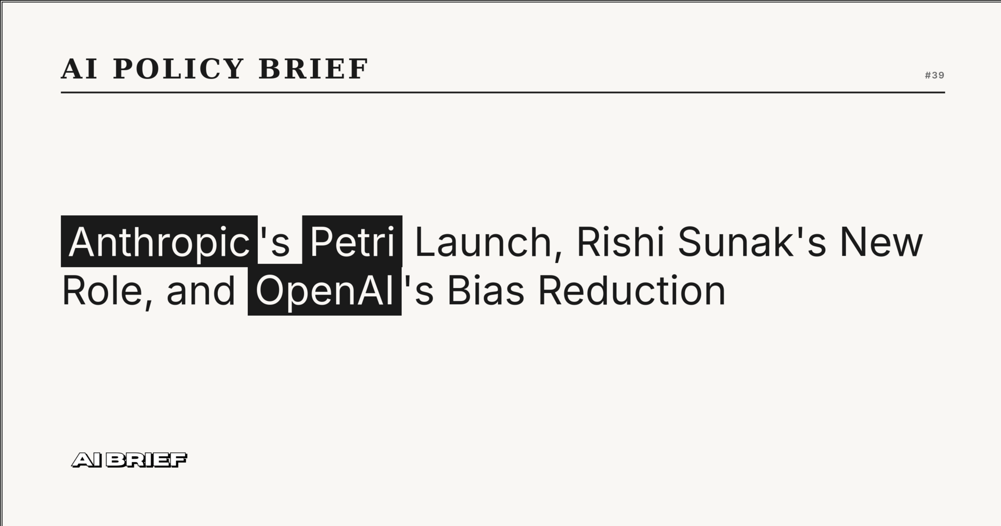 Anthropic's Petri Launch, Rishi Sunak's New Role, and OpenAI's Bias Reduction - AI Policy Brief #39