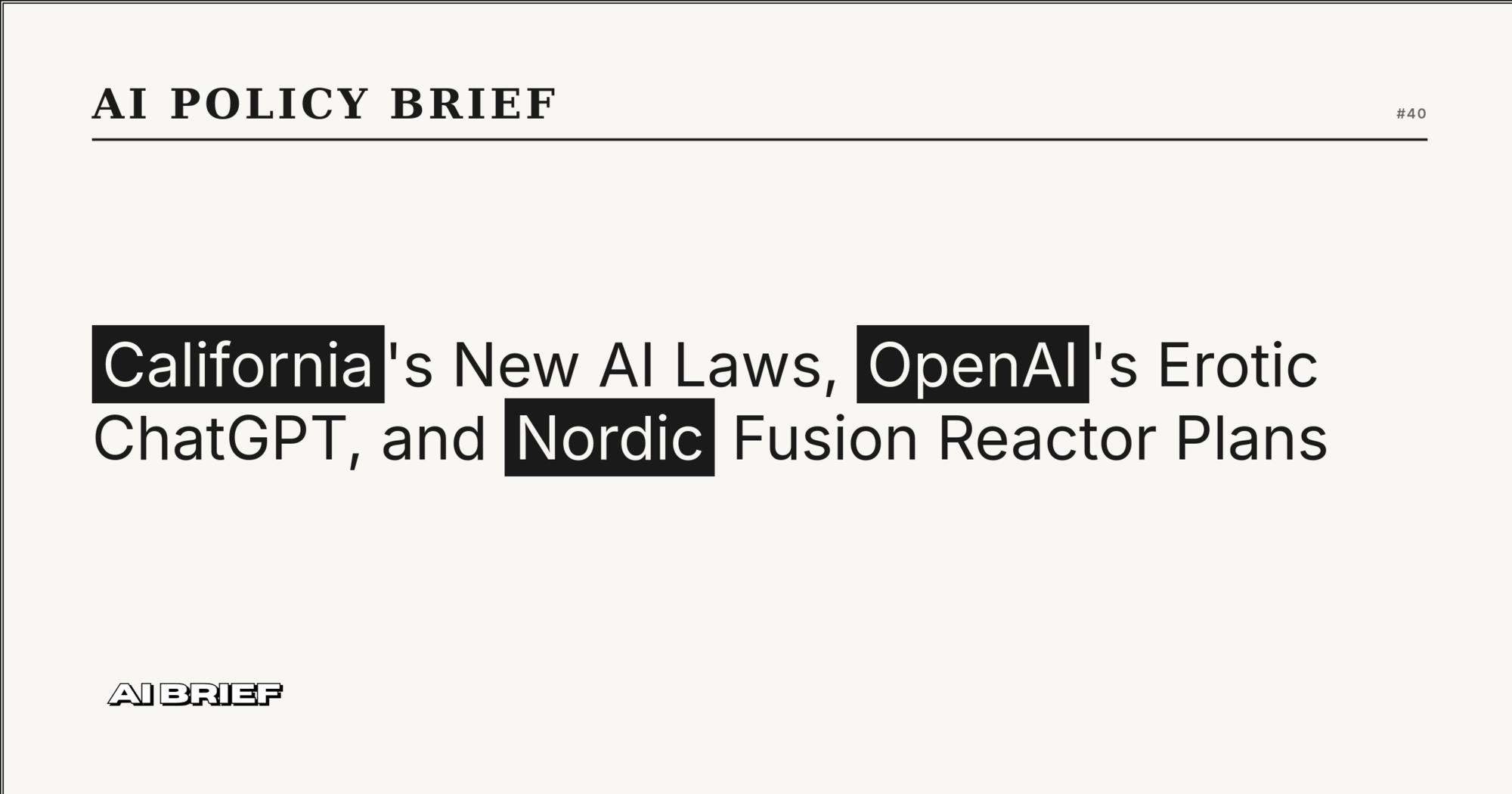 California's New AI Laws, OpenAI's Erotic ChatGPT, and Nordic Fusion Reactor Plans - AI Policy Brief #40