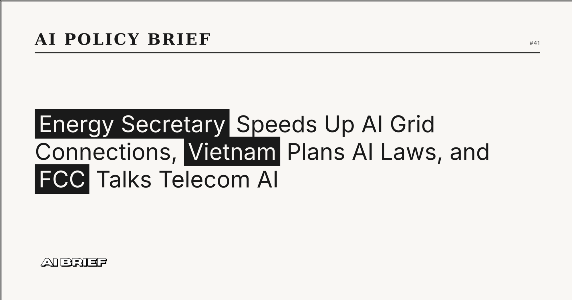Energy Secretary Speeds Up AI Grid Connections, Vietnam Plans AI Laws, and FCC Talks Telecom AI - AI Policy Brief #41
