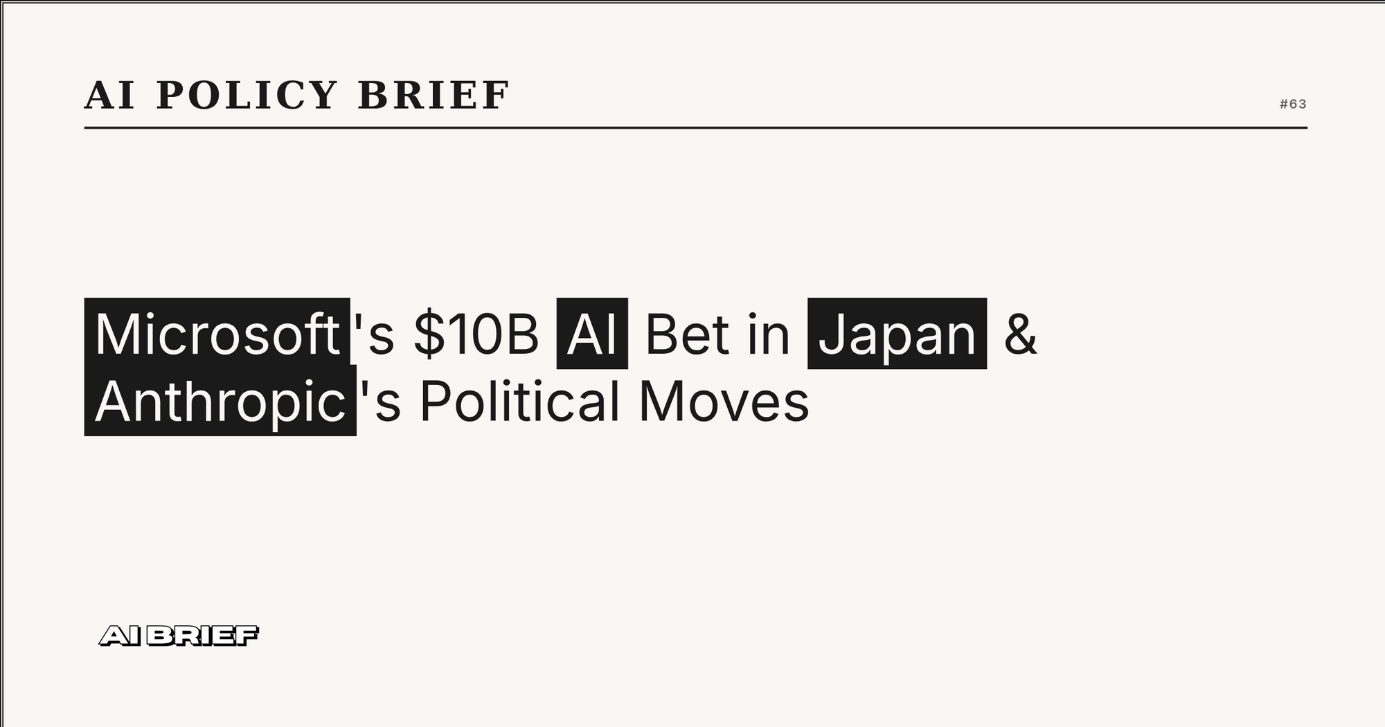 Microsoft's $10B AI Bet in Japan & Anthropic's Political Moves - AI Policy Brief #63