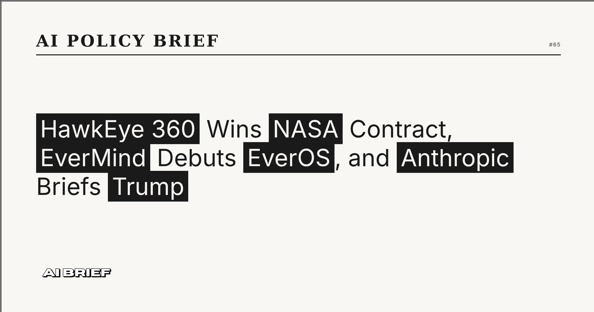 HawkEye 360 Wins NASA Contract, EverMind Debuts EverOS, and Anthropic Briefs Trump - AI Policy Brief #65