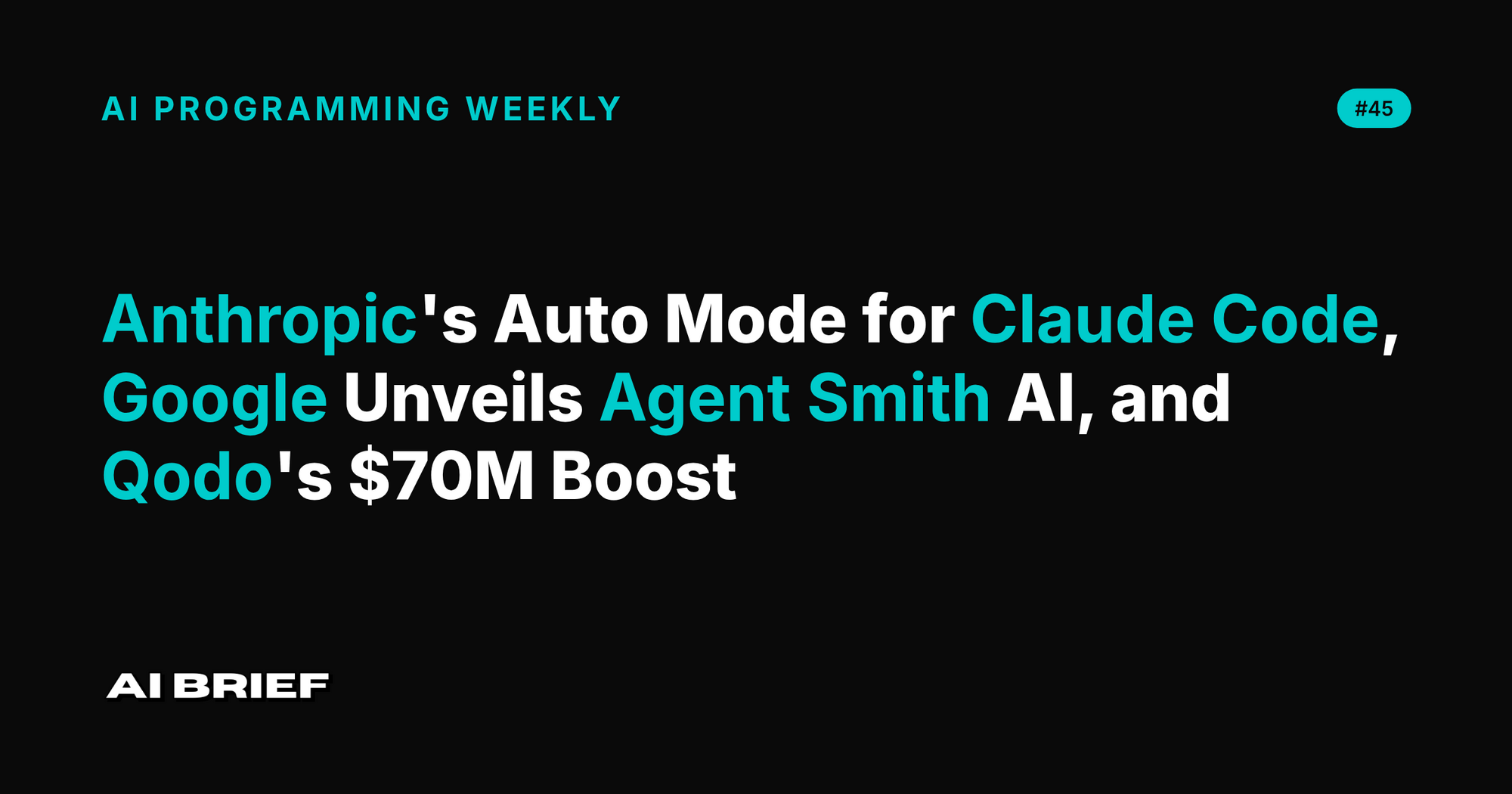 Anthropic's Auto Mode for Claude Code, Google Unveils Agent Smith AI, and Qodo's $70M Boost - AI Programming Weekly #45