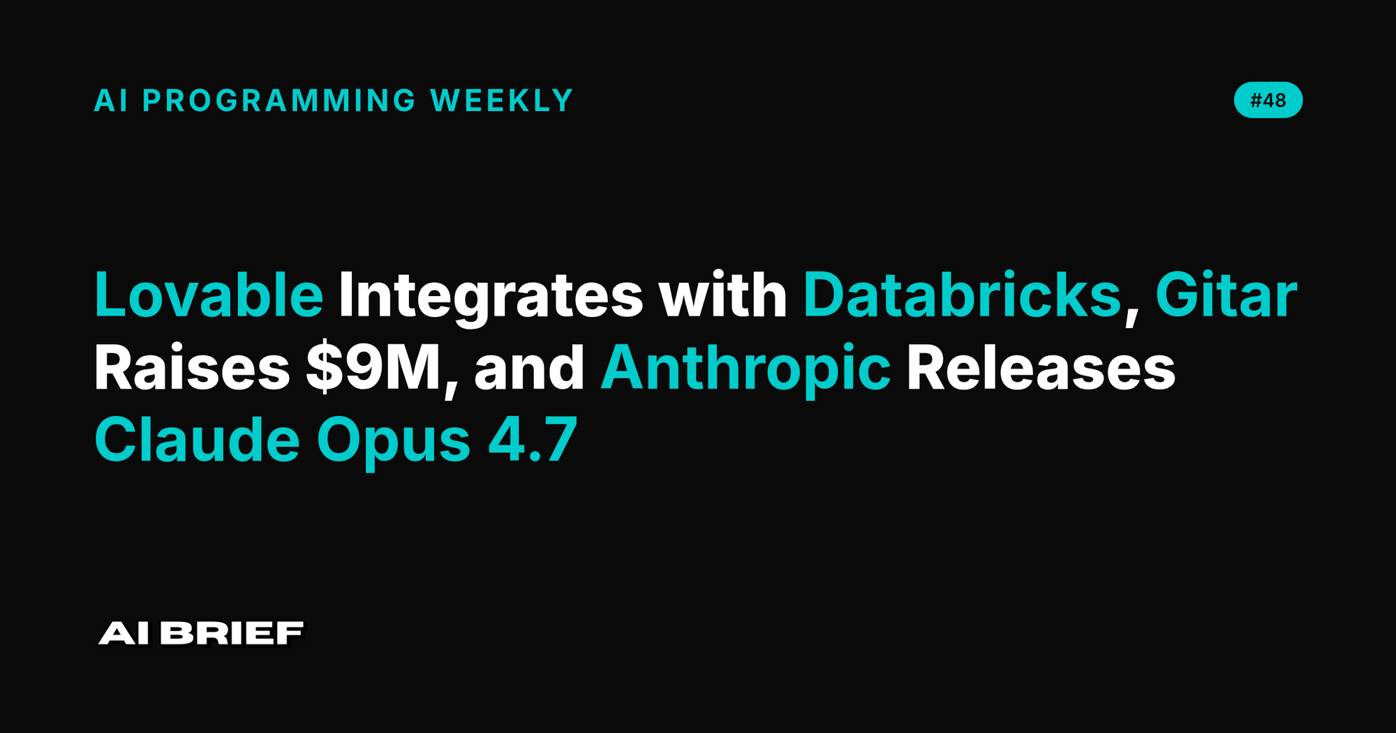 Lovable Integrates with Databricks, Gitar Raises $9M, and Anthropic Releases Claude Opus 4.7 - AI Programming Weekly #48