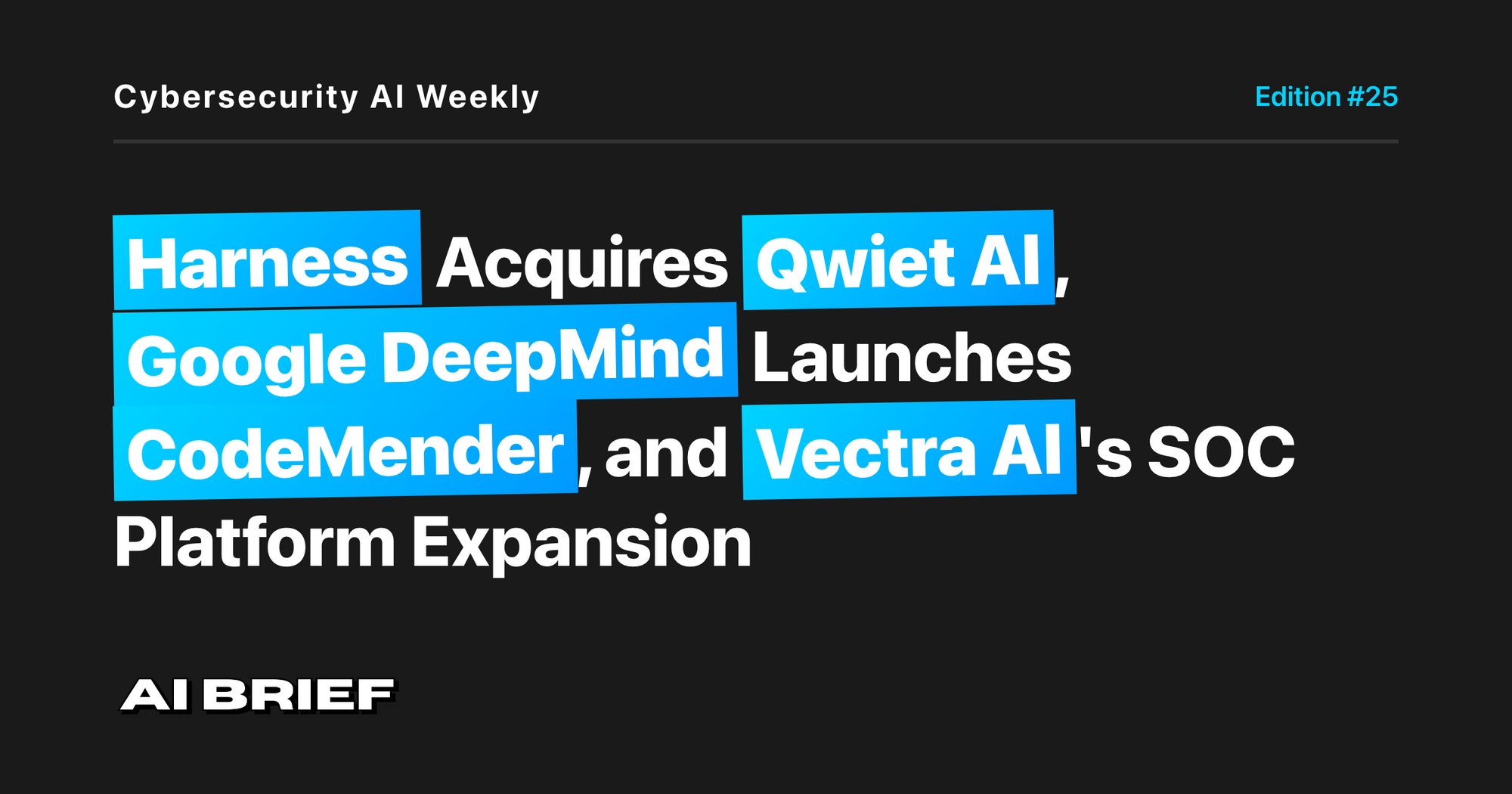 Harness Acquires Qwiet AI, Google DeepMind Launches CodeMender, and Vectra AI's SOC Platform Expansion - Cybersecurity AI Weekly #25