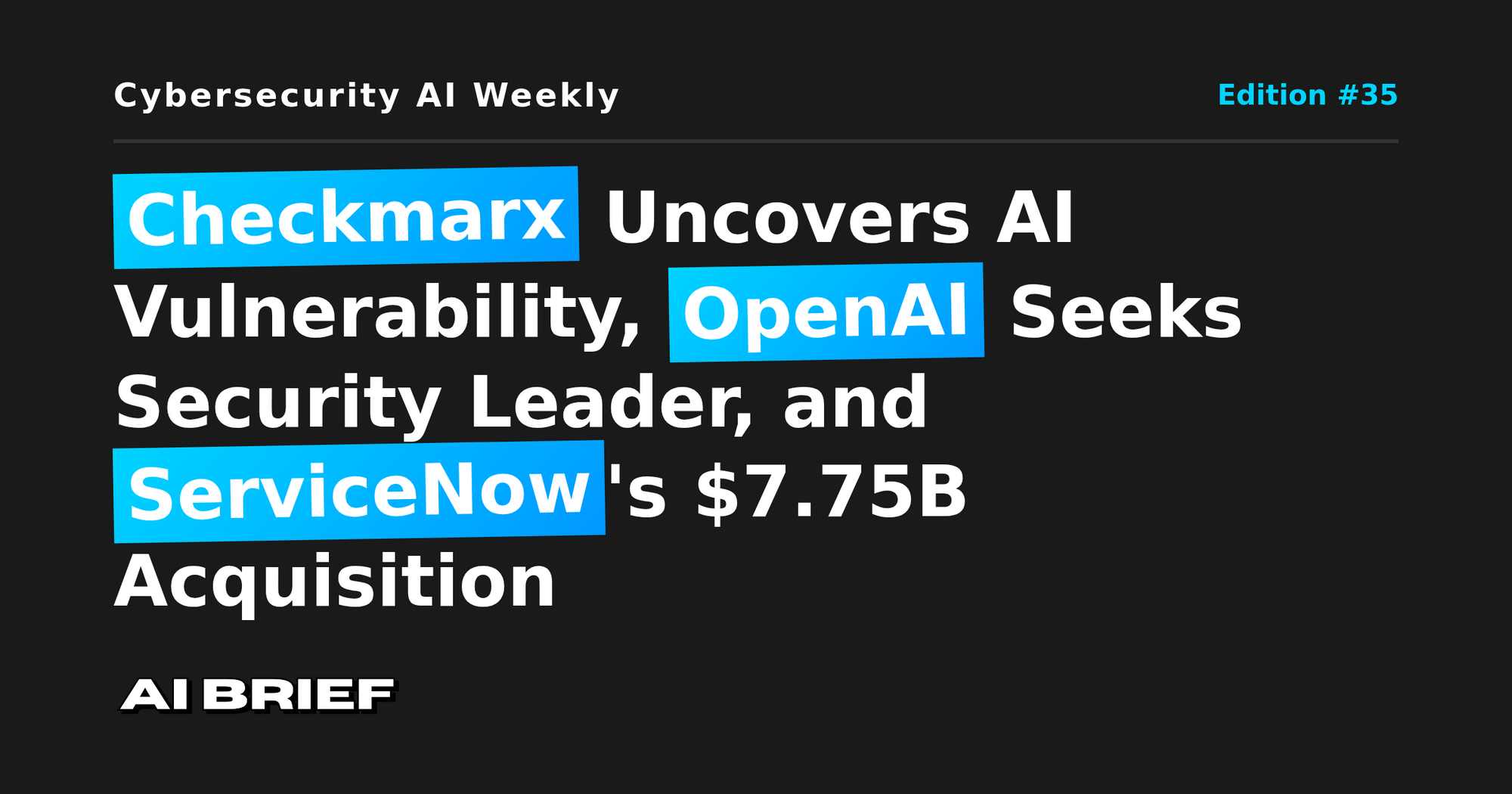 Checkmarx Uncovers AI Vulnerability, OpenAI Seeks Security Leader, and ServiceNow's $7.75B Acquisition - Cybersecurity AI Weekly #35