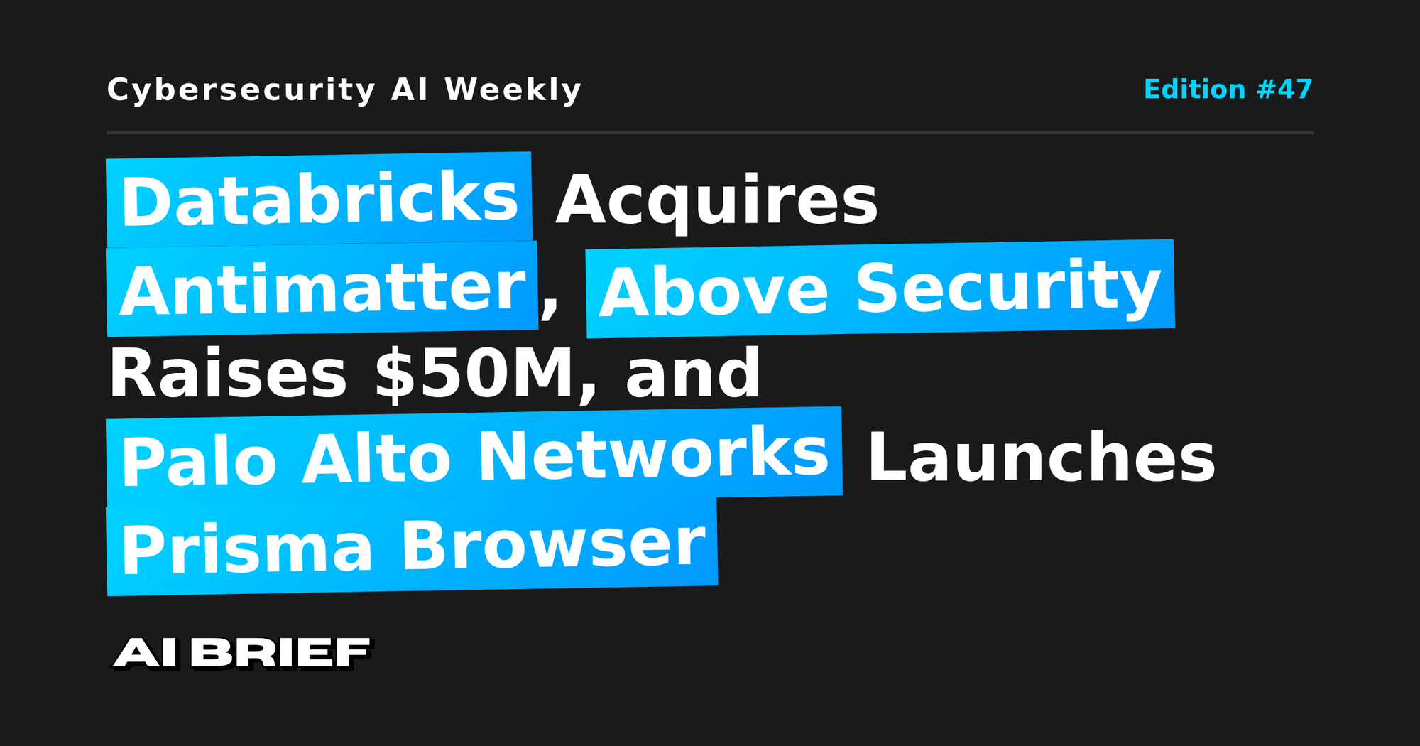 Databricks Acquires Antimatter, Above Security Raises $50M, and Palo Alto Networks Launches Prisma Browser - Cybersecurity AI Weekly #47