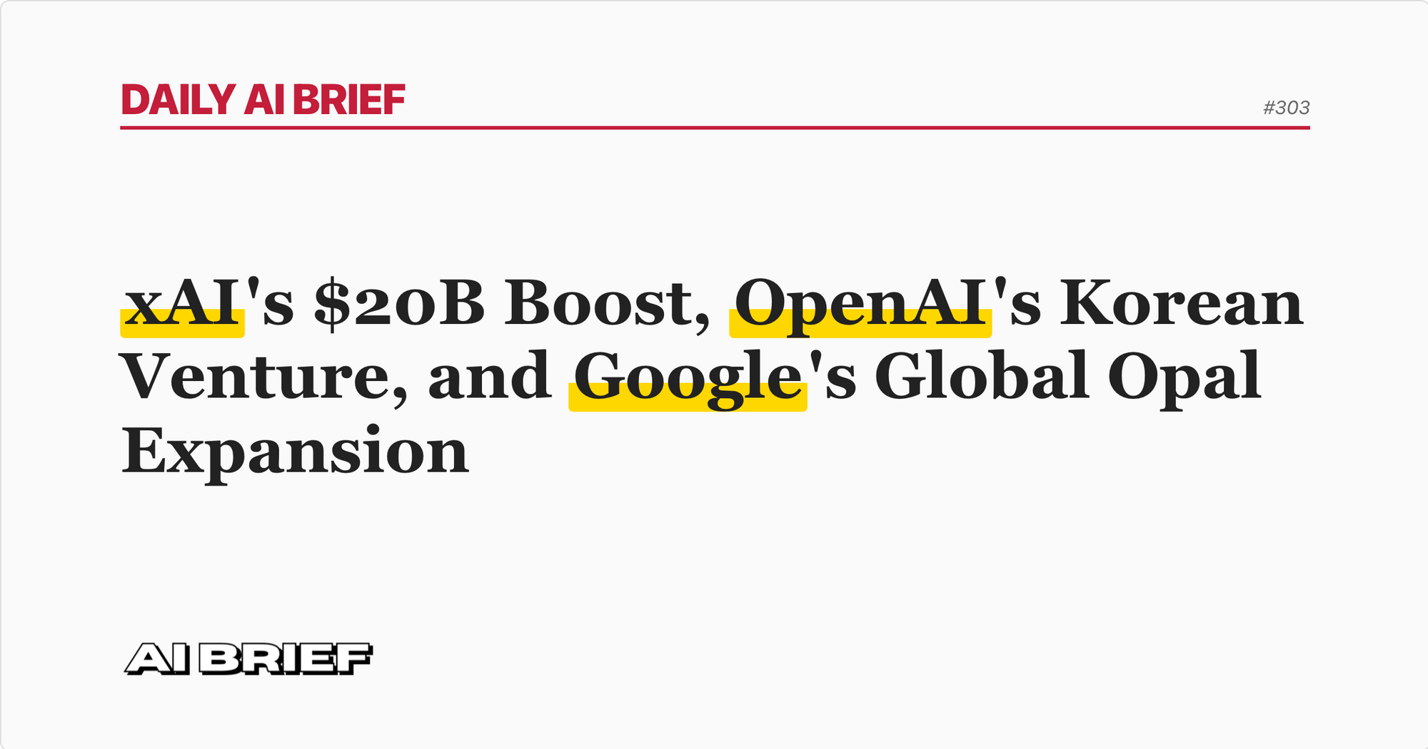 xAI's $20B Boost, OpenAI's Korean Venture, and Google's Global Opal Expansion - Daily AI Brief #303
