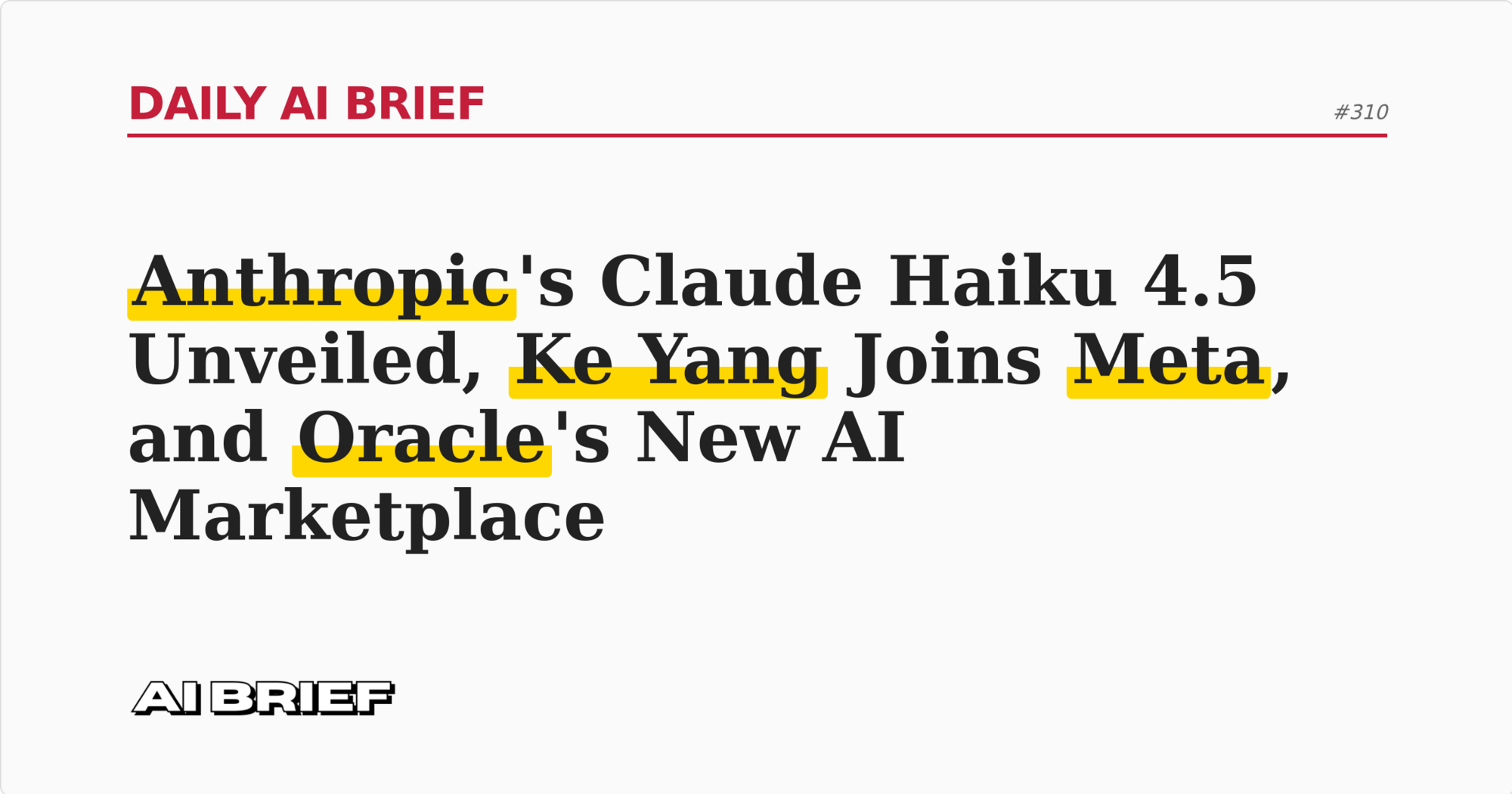 Anthropic's Claude Haiku 4.5 Unveiled, Ke Yang Joins Meta, and Oracle's New AI Marketplace - Daily AI Brief #310