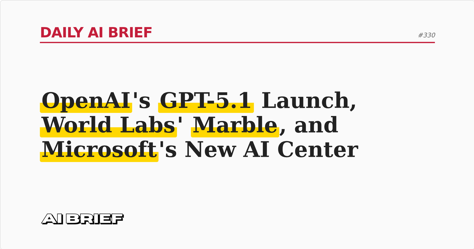 OpenAI's GPT-5.1 Launch, World Labs' Marble, and Microsoft's New AI Center - Daily AI Brief #330