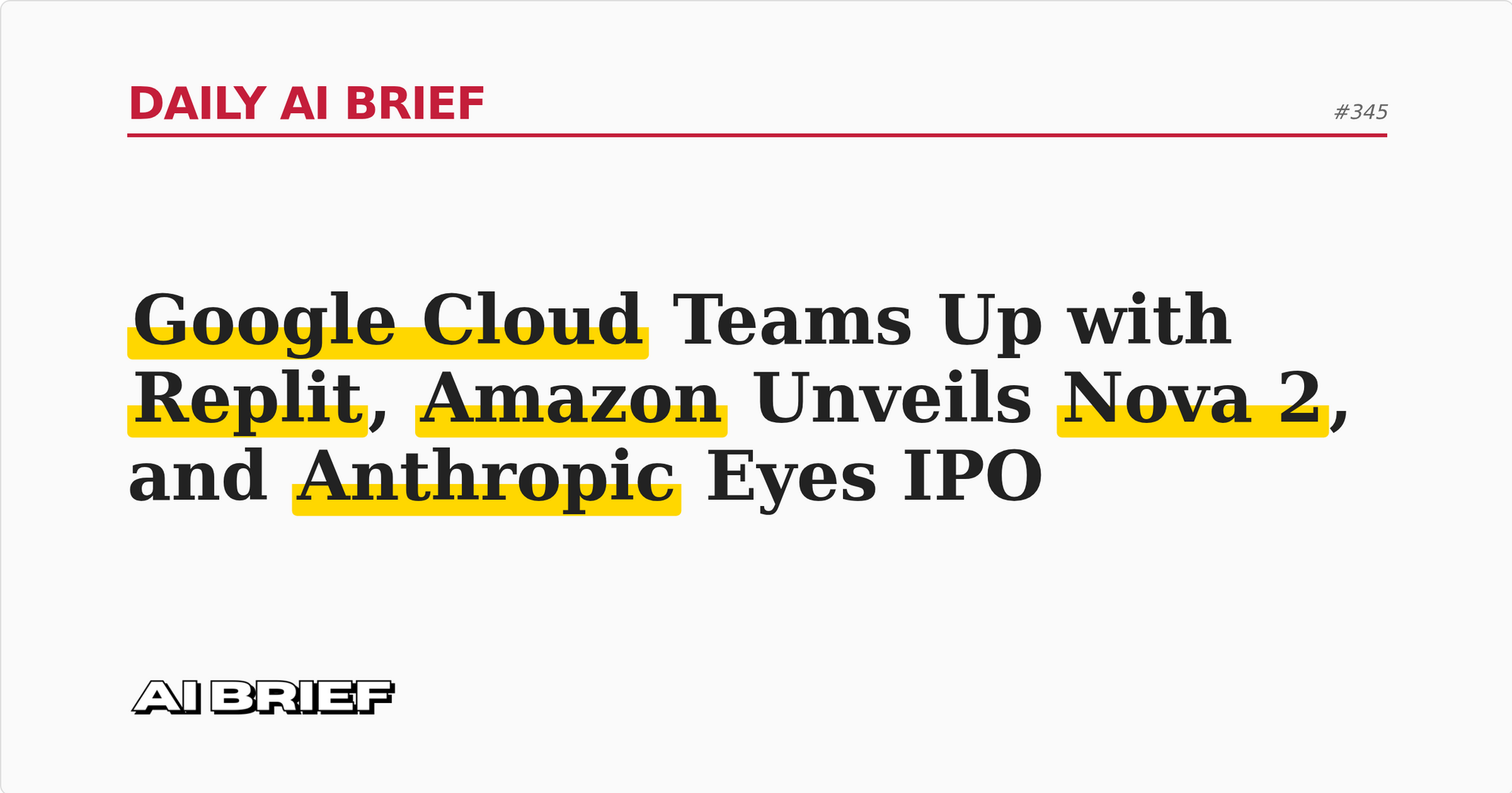 Google Cloud Teams Up with Replit, Amazon Unveils Nova 2, and Anthropic Eyes IPO - Daily AI Brief #345