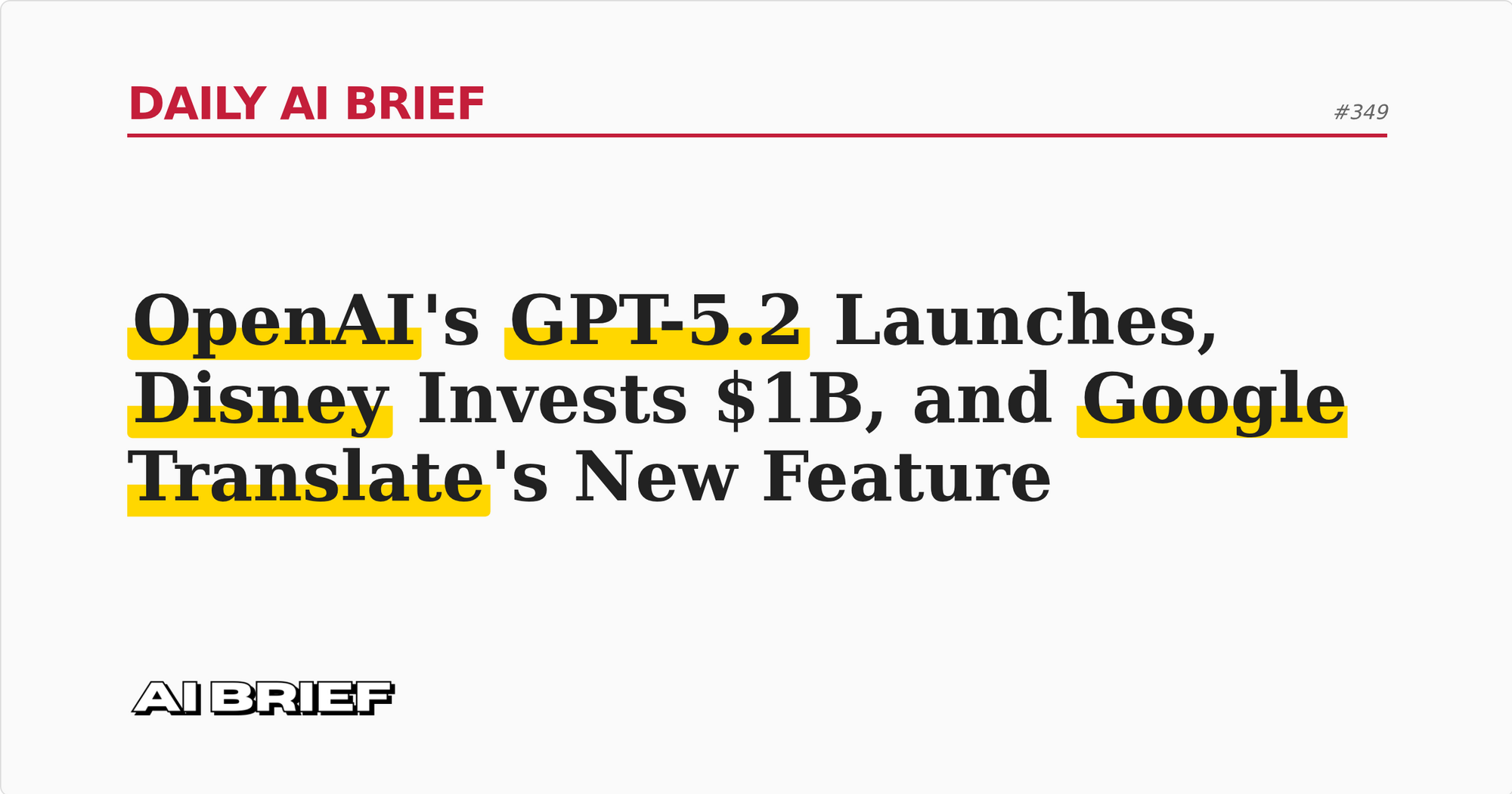 OpenAI's GPT-5.2 Launches, Disney Invests $1B, and Google Translate's New Feature - Daily AI Brief #349