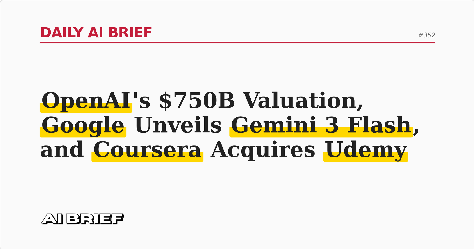 OpenAI's $750B Valuation, Google Unveils Gemini 3 Flash, and Coursera Acquires Udemy - Daily AI Brief #352