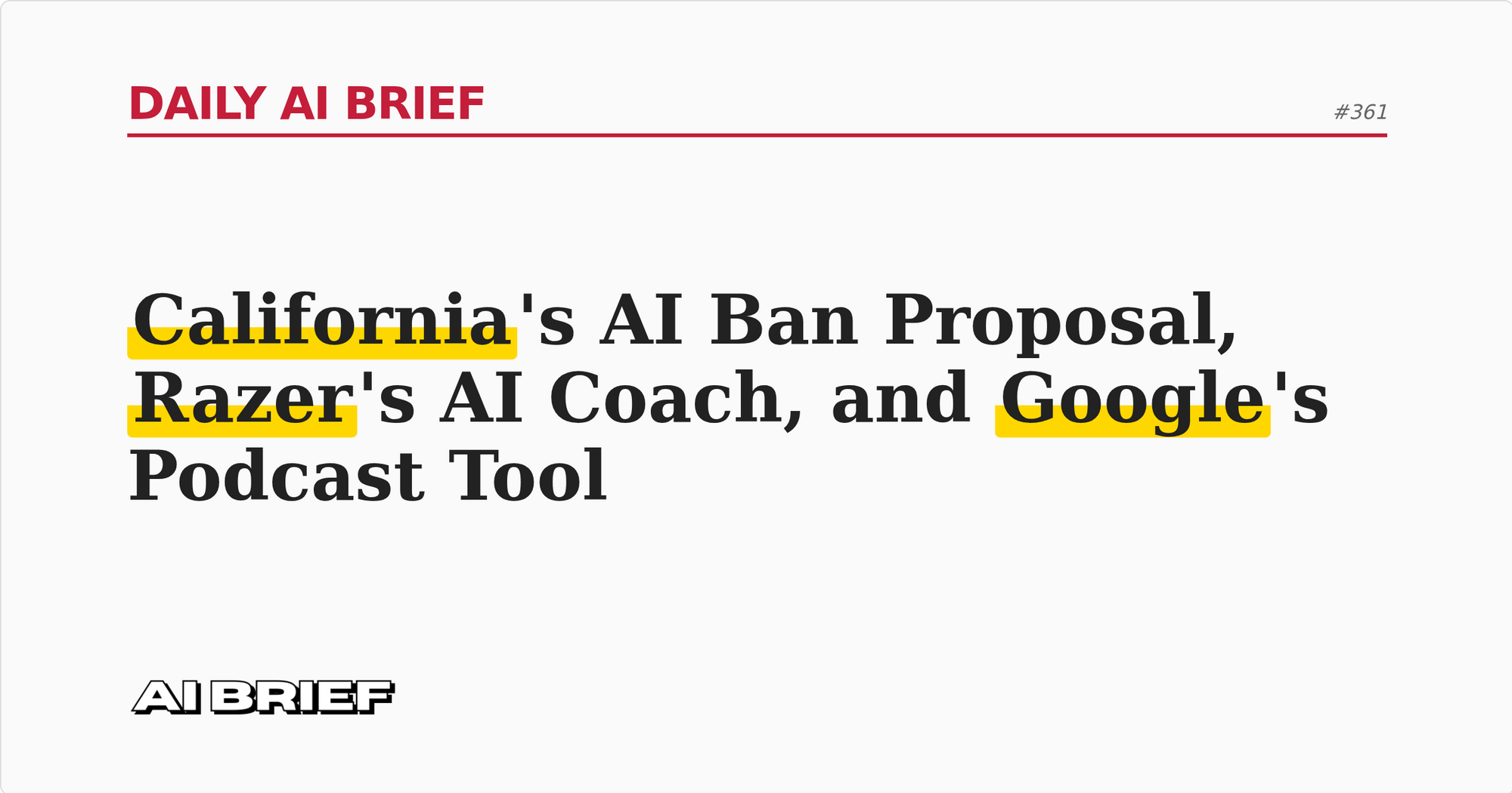 California's AI Ban Proposal, Razer's AI Coach, and Google's Podcast Tool - Daily AI Brief #361