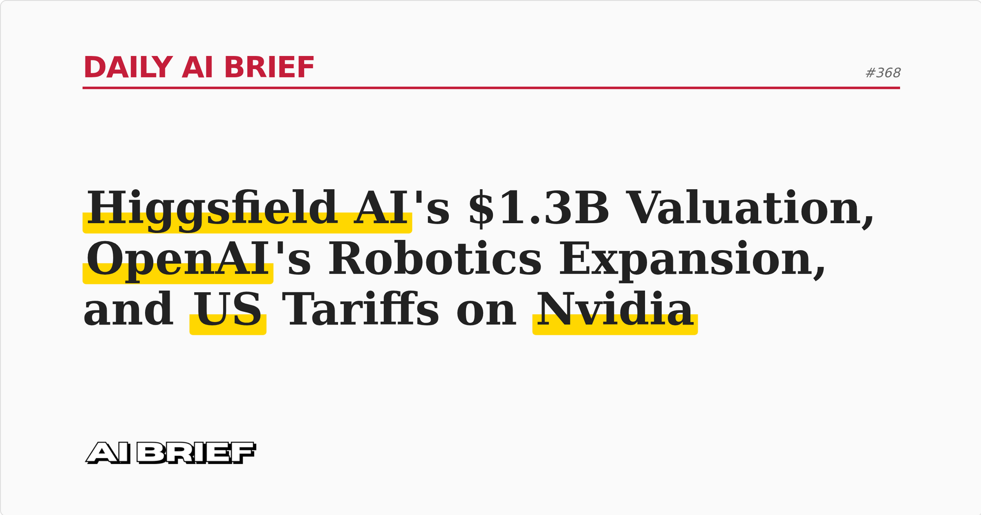 Higgsfield AI's $1.3B Valuation, OpenAI's Robotics Expansion, and US Tariffs on Nvidia - Daily AI Brief #368