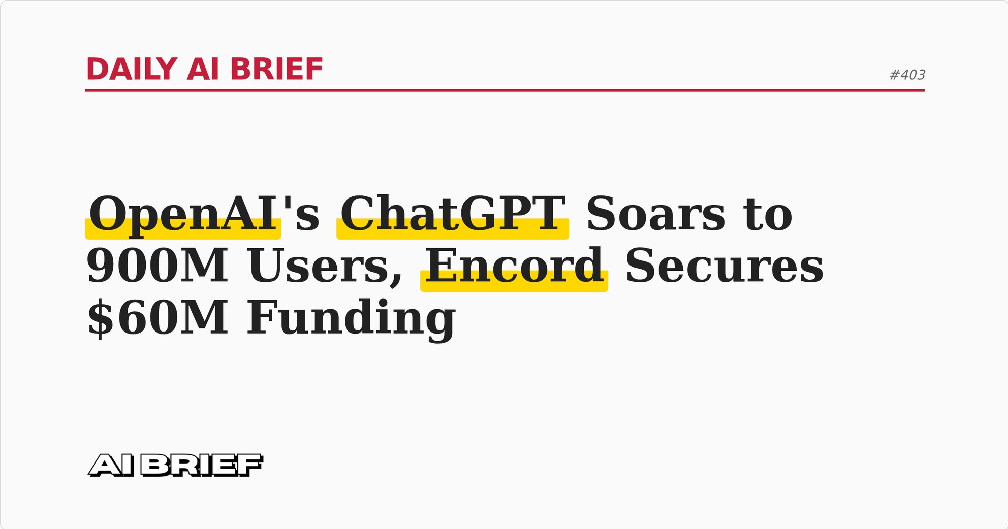 OpenAI's ChatGPT Soars to 900M Users, Encord Secures $60M Funding - Daily AI Brief #403
