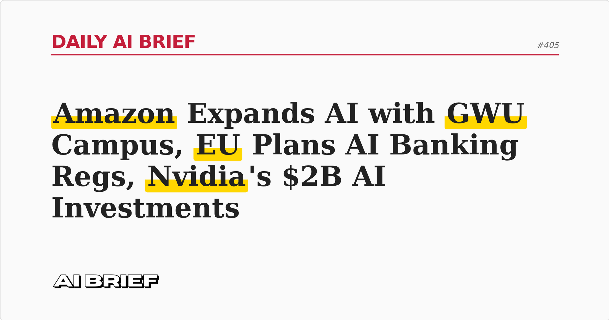 Amazon Expands AI with GWU Campus, EU Plans AI Banking Regs, Nvidia's $2B AI Investments - Daily AI Brief #405