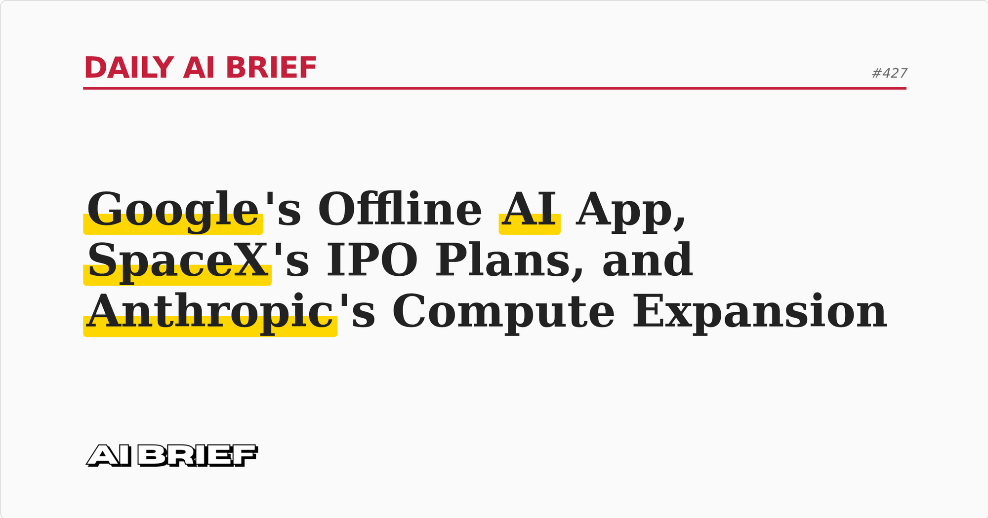 Google's Offline AI App, SpaceX's IPO Plans, and Anthropic's Compute Expansion - Daily AI Brief #427