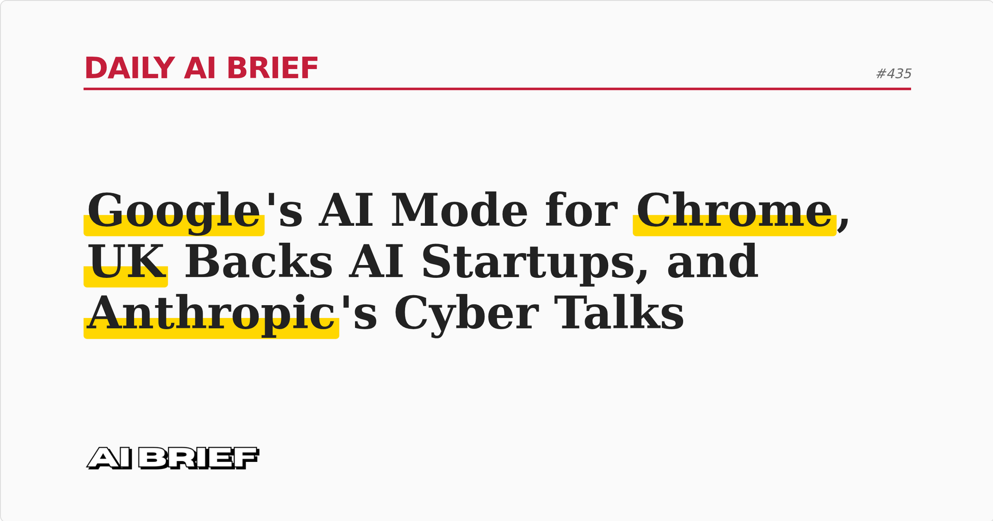 Google's AI Mode for Chrome, UK Backs AI Startups, and Anthropic's Cyber Talks - Daily AI Brief #435