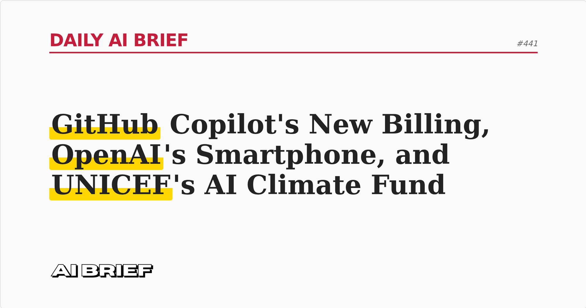 GitHub Copilot's New Billing, OpenAI's Smartphone, and UNICEF's AI Climate Fund - Daily AI Brief #441