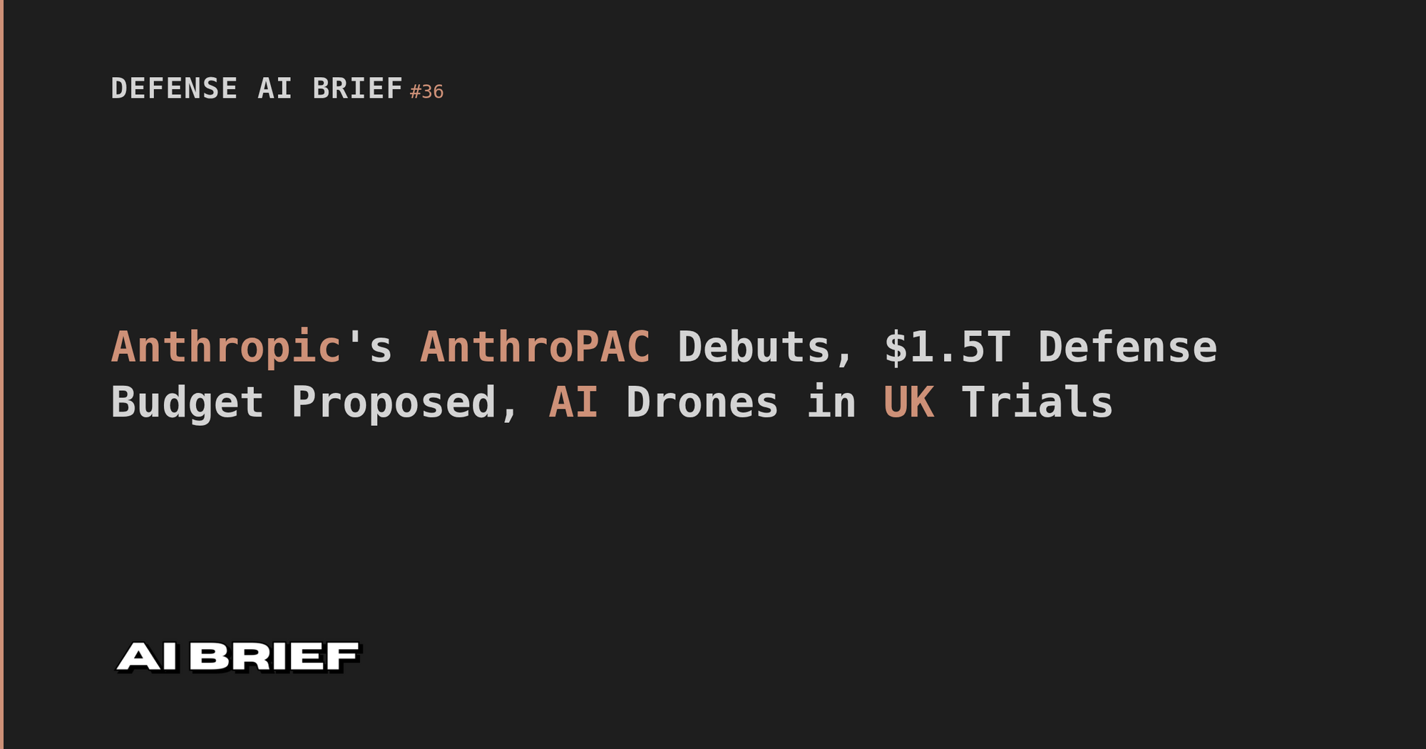 Anthropic's AnthroPAC Debuts, $1.5T Defense Budget Proposed, AI Drones in UK Trials - Defense AI Brief #36