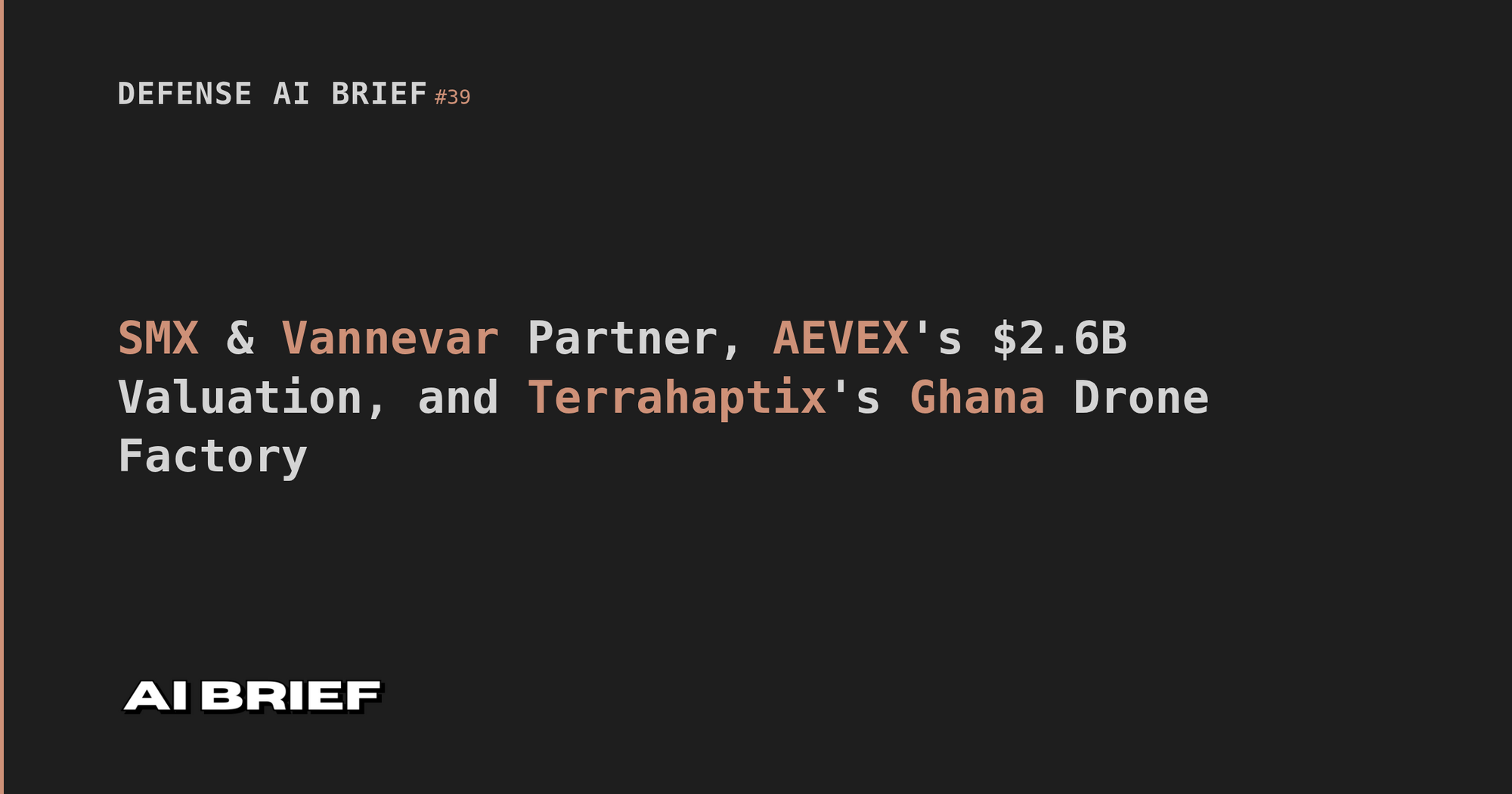 SMX & Vannevar Partner, AEVEX's $2.6B Valuation, and Terrahaptix's Ghana Drone Factory - Defense AI Brief #39