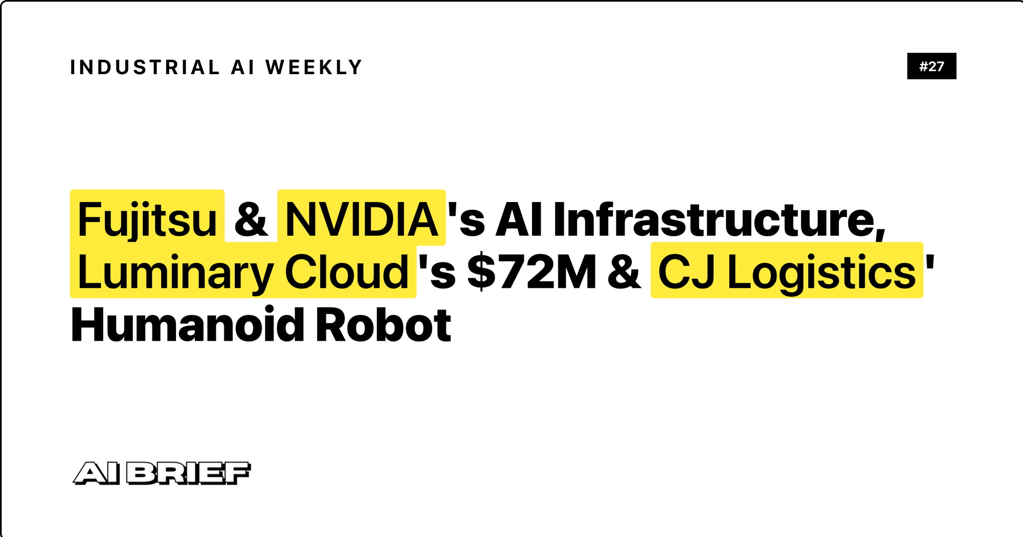 Fujitsu & NVIDIA's AI Infrastructure, Luminary Cloud's $72M & CJ Logistics' Humanoid Robot - Industrial AI Weekly #27