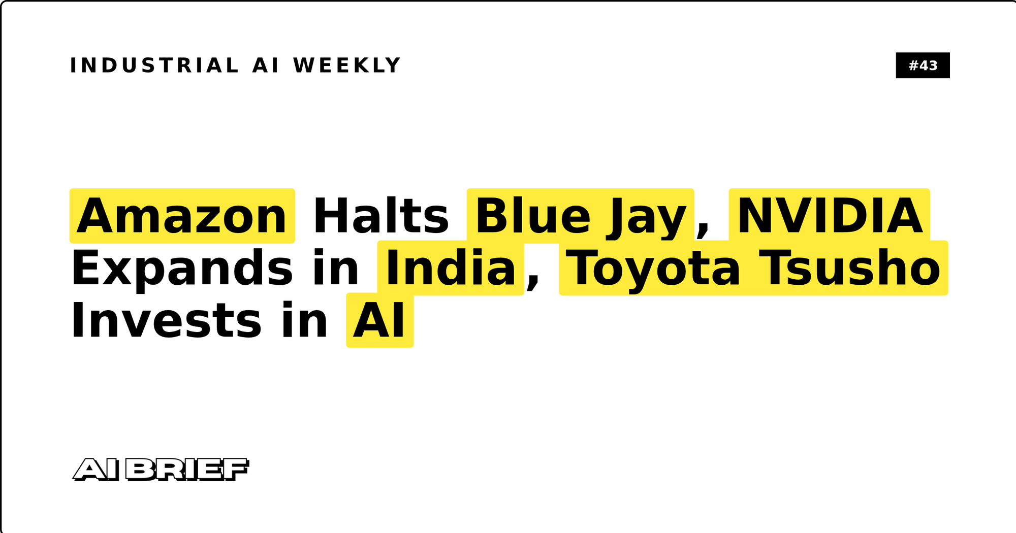 Amazon Halts Blue Jay, NVIDIA Expands in India, Toyota Tsusho Invests in AI - Industrial AI Weekly #43