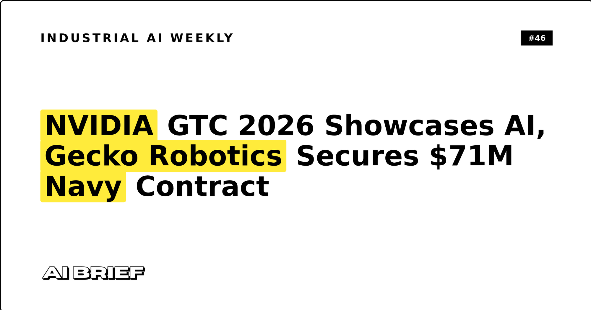 NVIDIA GTC 2026 Showcases AI, Gecko Robotics Secures $71M Navy Contract - Industrial AI Weekly #46