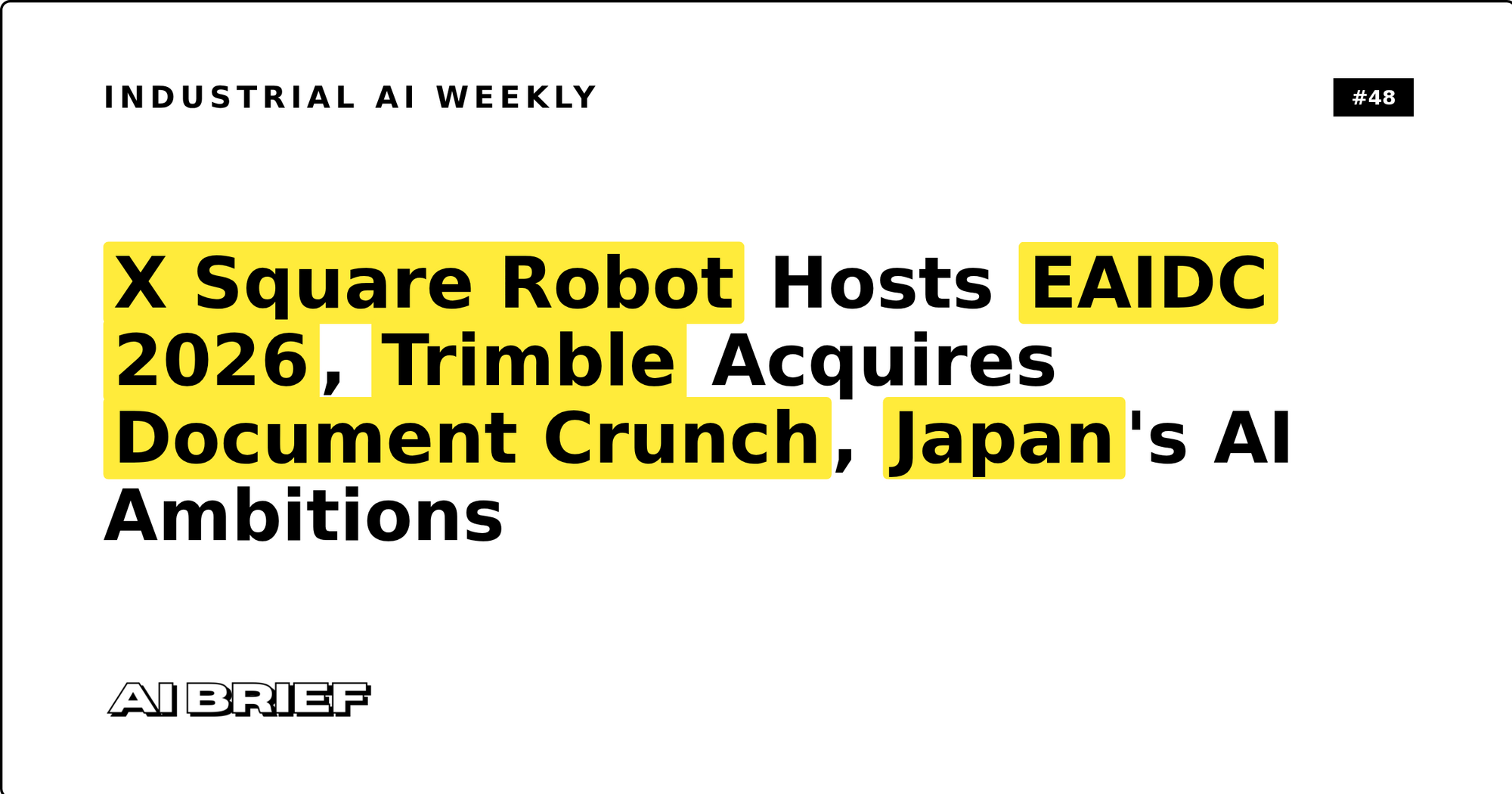 X Square Robot Hosts EAIDC 2026, Trimble Acquires Document Crunch, Japan's AI Ambitions - Industrial AI Weekly #48