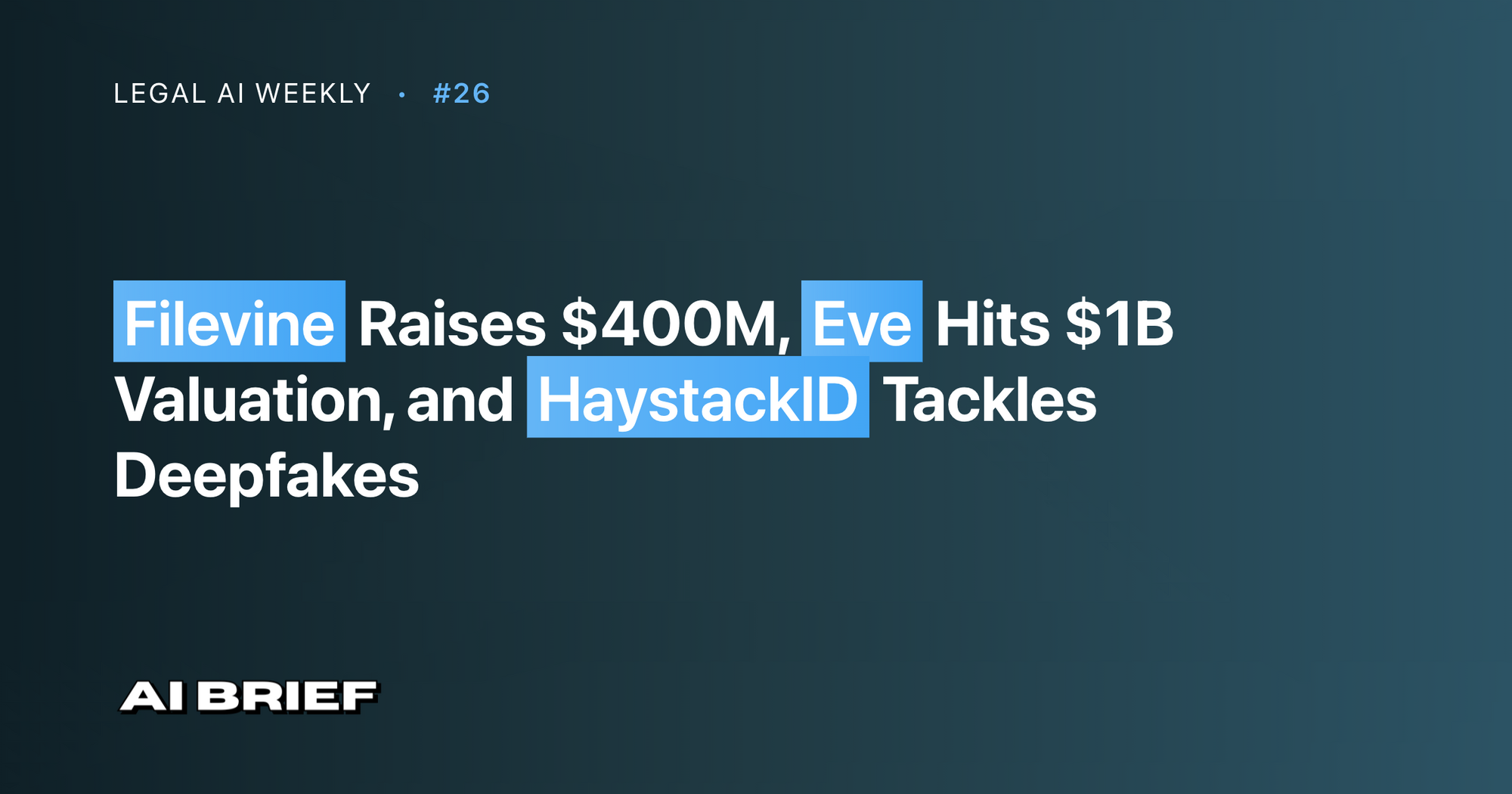 Filevine Raises $400M, Eve Hits $1B Valuation, and HaystackID Tackles Deepfakes - Legal AI Weekly #26