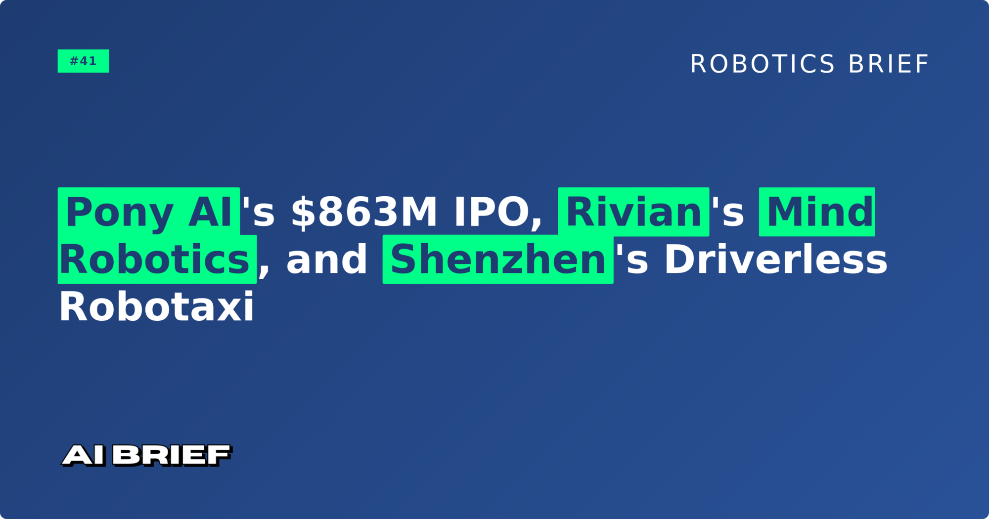 Pony AI's $863M IPO, Rivian's Mind Robotics, and Shenzhen's Driverless Robotaxi - Robotics Brief #41